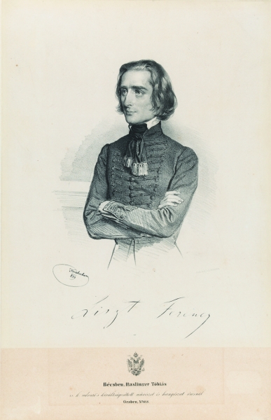 李斯特肖像(石版画) 约瑟夫·克瑞胡波 1839年 匈牙利李斯特故居博物馆藏